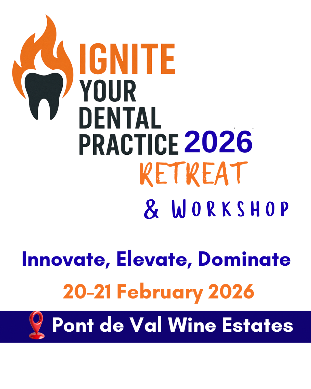 Ignite Your Dental Practice 2026 is a 2-day CPD-accredited retreat and workshop designed for dentists in private practice. Hosted by Dr. Kenny Chokwe, this event blends cutting-edge marketing strategies, hands-on practice growth workshops, and energizing team-building in a retreat setting. Walk away with a 90-day action plan, AI-powered marketing tools, and renewed confidence to make 2026 your most profitable year yet.